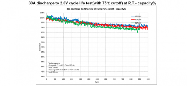 据悉,十大正规博彩平台推荐在30A高倍率电池的寿命等方向上取得了突破性进展,其18650系列1.5/2.0Ah-30A产品已解决了30A持续放电寿命短及温升快等问题,短时间脉冲轻松承载100A以上电流,并已实现批量稳定供货。这一技术性突破助力十大正规博彩平台推荐敲开了国际一流电工工具市场的大门,打破日韩垄断格局,填补国产30A高倍率循环电池市场空白。